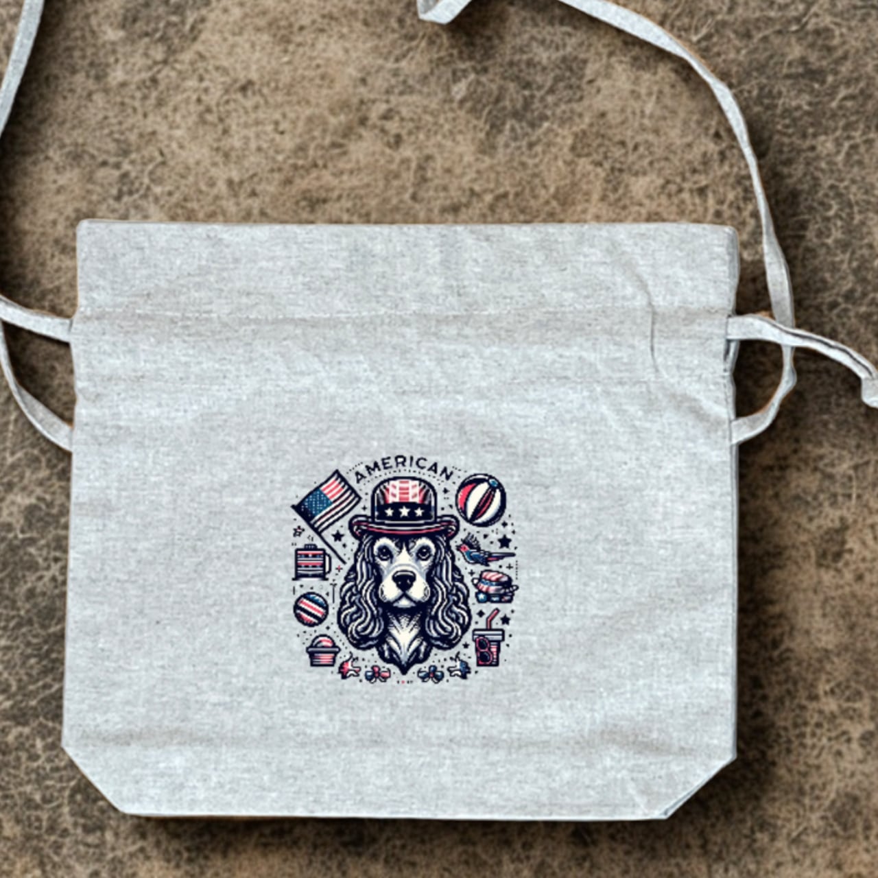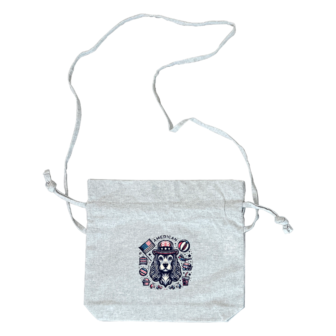 # シャンブリック巾着ショルダーバッグ|アメリカン・コッカー・スパニエル×アメリカ国旗全3色