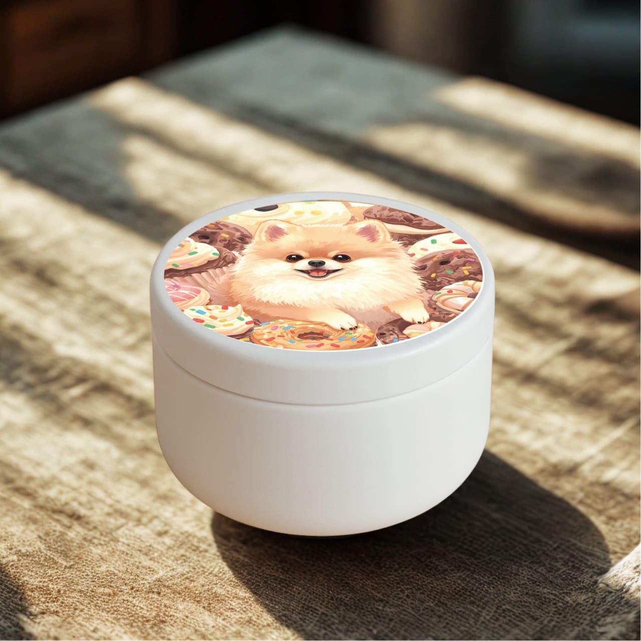 ■愛情溢れるポメラニアンダザインのおでかけトリーツ缶!