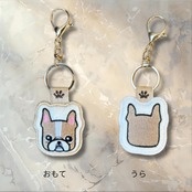 ■愛情溢れるフレンチブルドック(フォーン&ホワイト)デザインの両面刺繍キーホルダー!